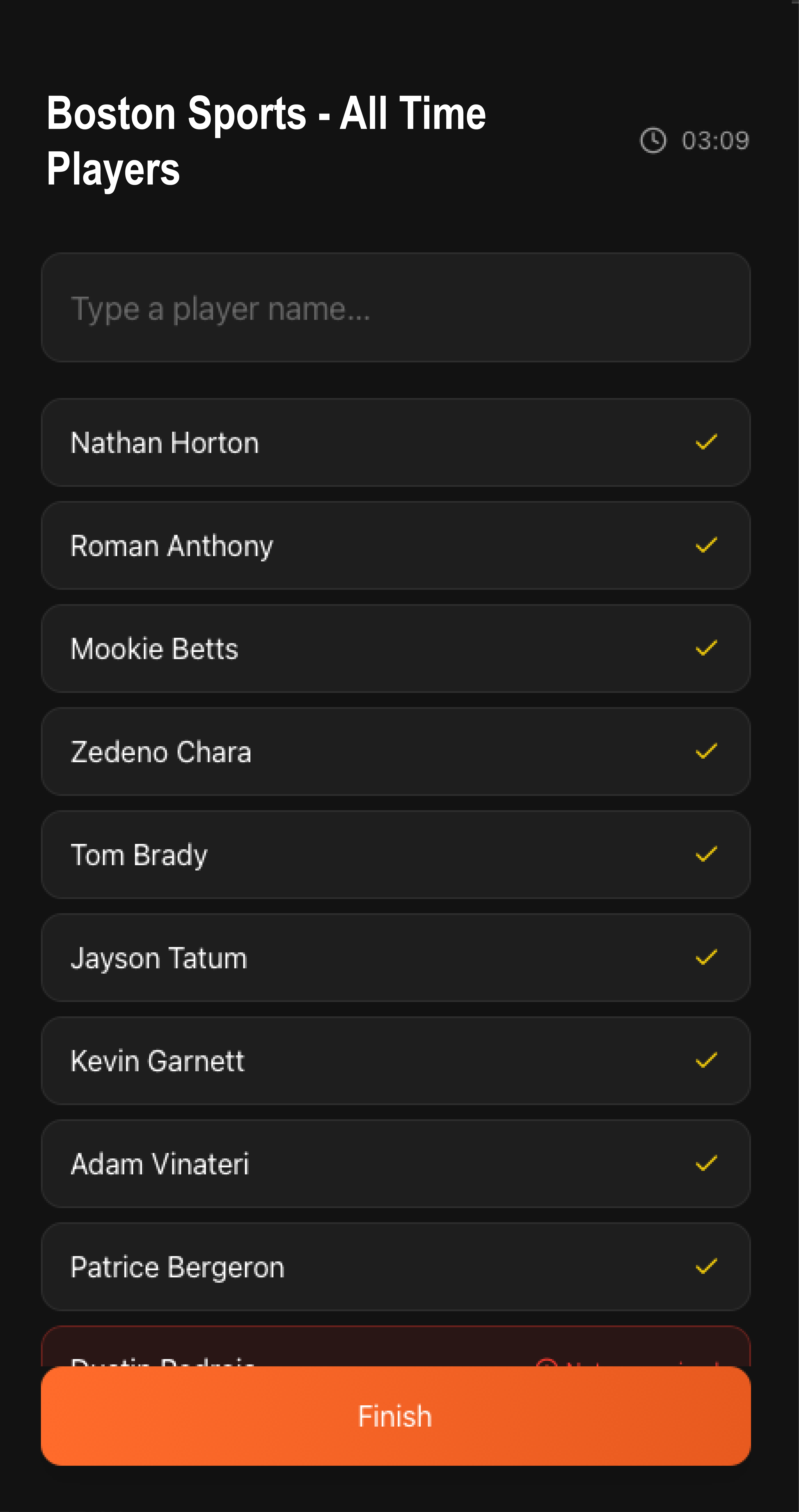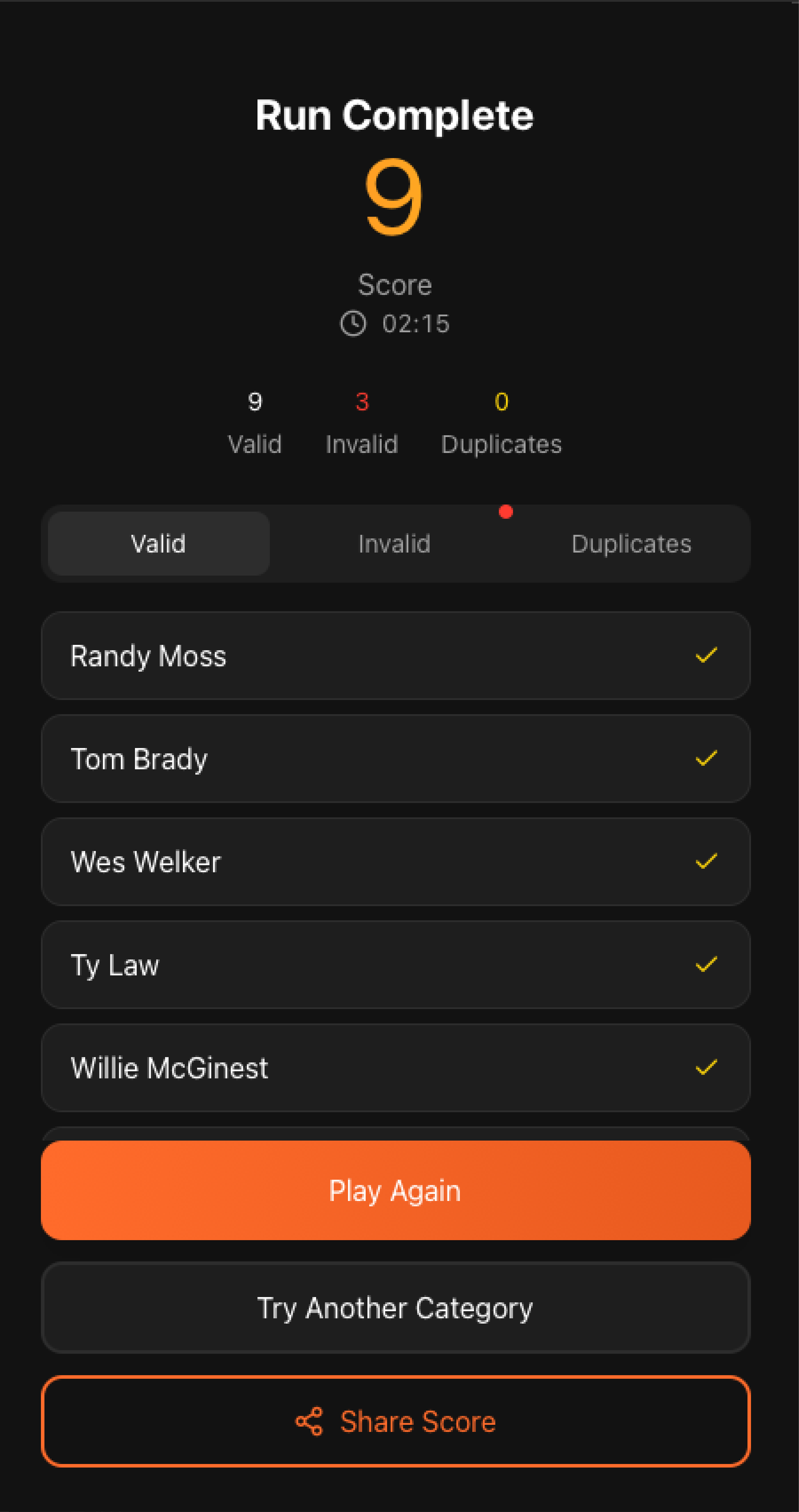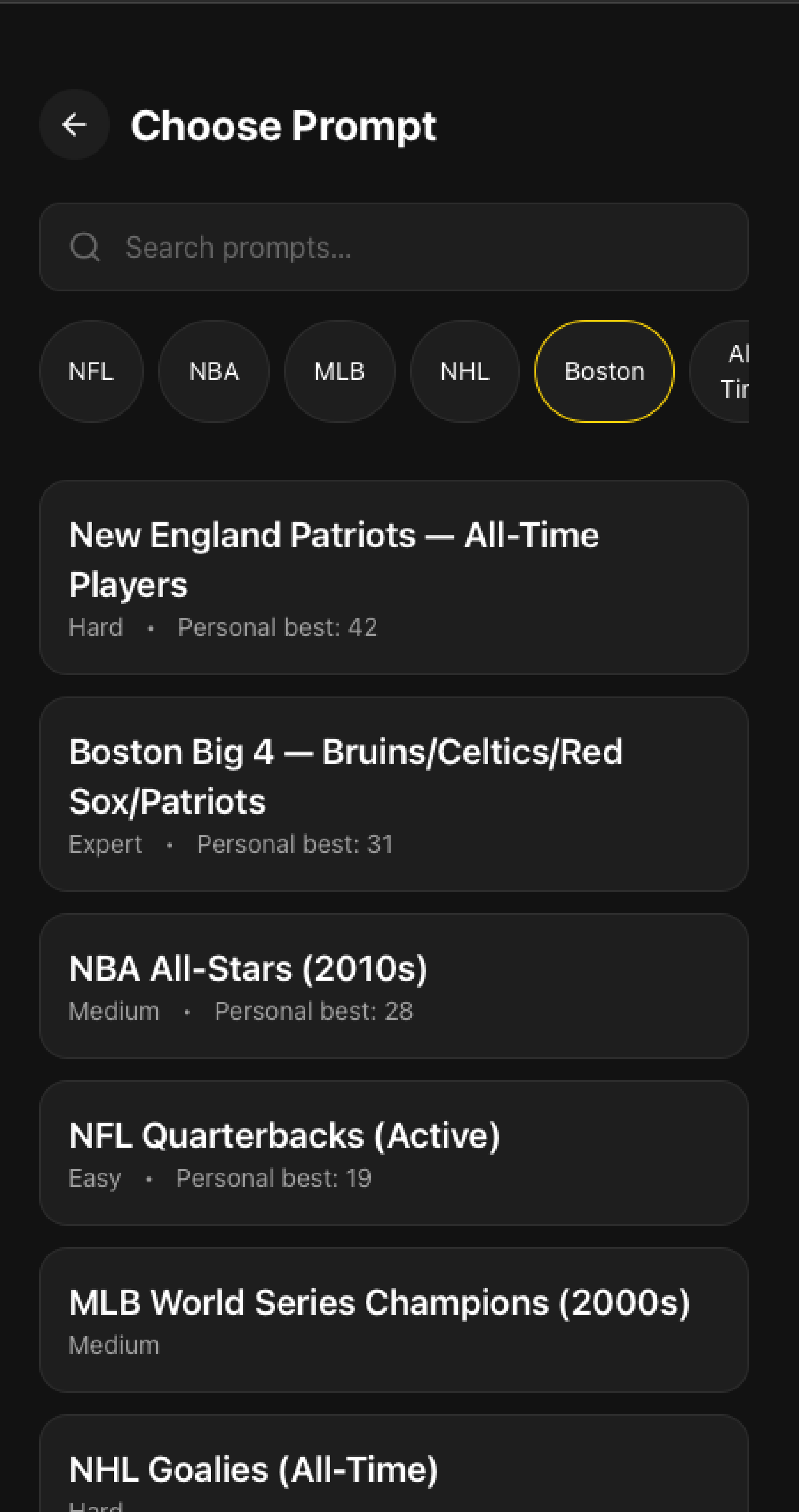 Lister is a minimalist trivia-style game built around a simple challenge: list as many valid names as you can within a time limit, without repeating any entries. Players choose a category (e.g., NFL, NBA, MLB, soccer, movie actors, etc.) and type in names as they come to mind, just like scribbling lists on paper during downtime or on a plane. The timer pauses when you leave the app, and each entry is validated and checked for duplicates in real time.