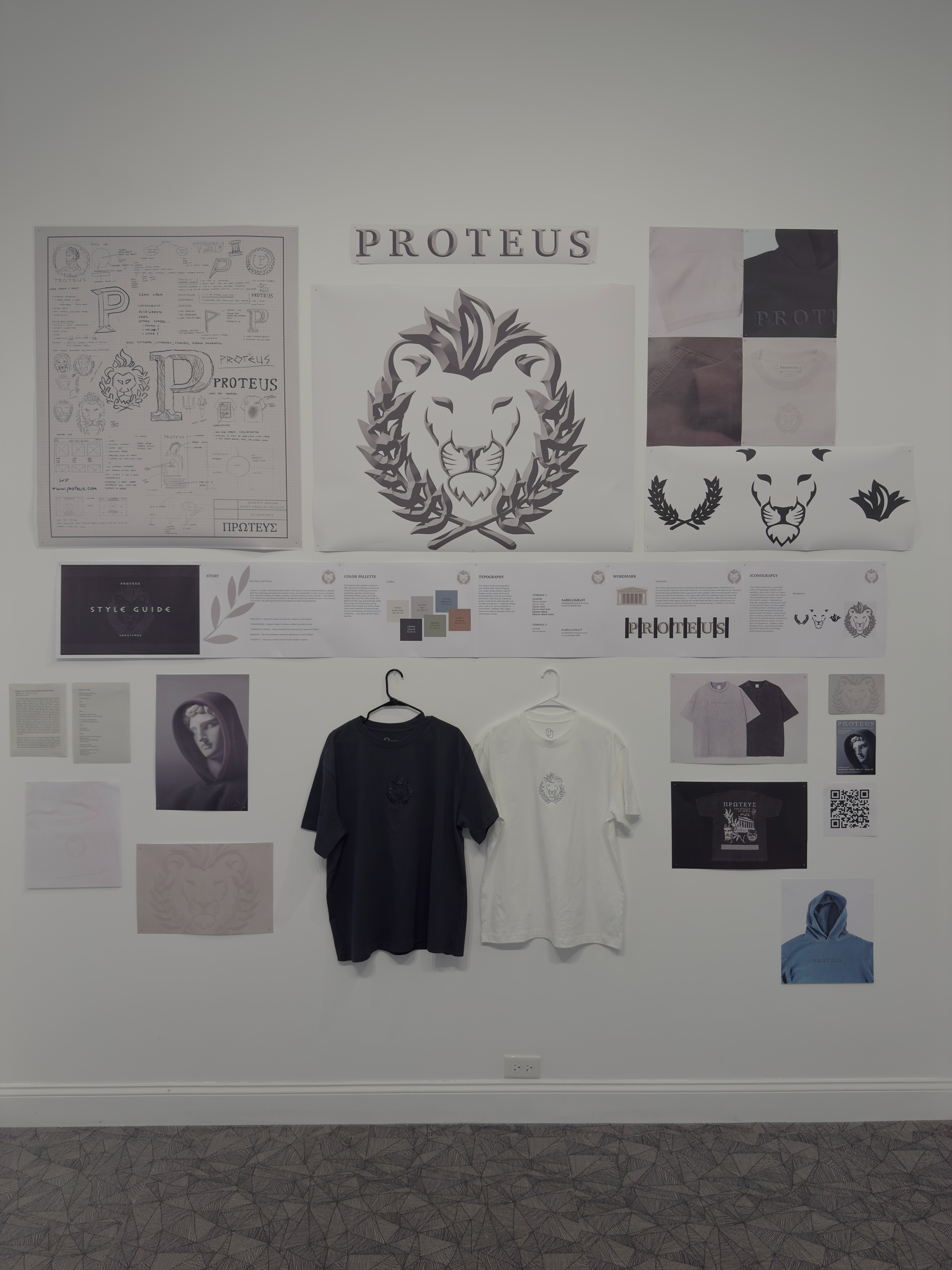 What started as an academic study quickly became something larger... a living brand rooted in the pursuit of excellence. The thesis exhibition marked the first physical expression of Proteus, connecting my design process to tangible garments and storytelling. Today, the brand continues to evolve beyond the classroom, guided by the same principles of clarity, proportion, and timeless form.